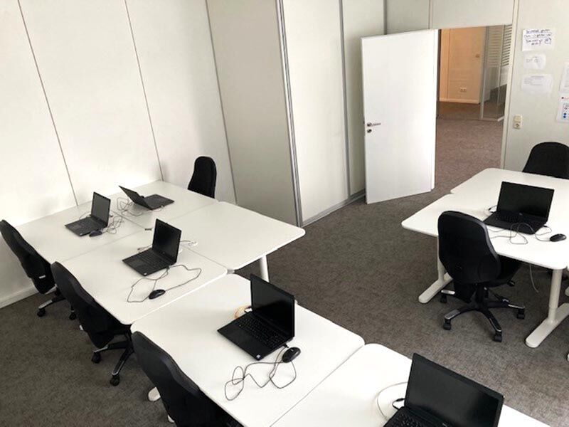 Ihre Schulungsräume befinden sich im modernen Gebäude in der Maybachstraße 3, in dem auch ein Fachhandel für Büromöbel, eine physiotherapeutische Praxis, ein Dentallabor und eine IT-Firma ansässig sind. Große Fensterfronten lassen viel Licht herein und helle Möblierung sorgt zusätzlich für eine freundliche Atmosphäre. Bei Bedarf können Sie einen barrierefrei zugänglichen Aufzug nutzen.