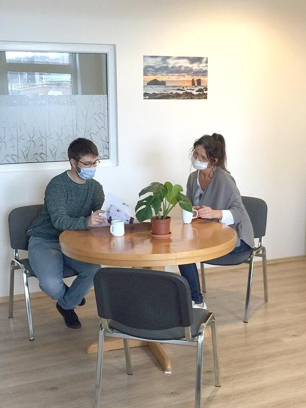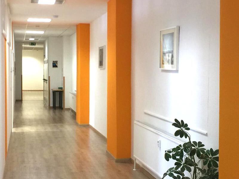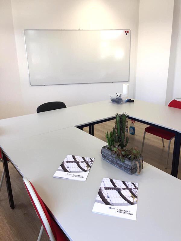 Die renovierten und angenehm hellen Schulungsräume verteilen sich auf zwei Gebäude und sorgen mit ihrem freundlichen Anstrich für eine angenehme Lernatmosphäre. Die Unterrichtszeit liegt zwischen 8 und 16:15 Uhr. Sie dürfen sich übrigens gerne auch am Bücherregal bedienen und Lesestoff zum Schmökern ausleihen.