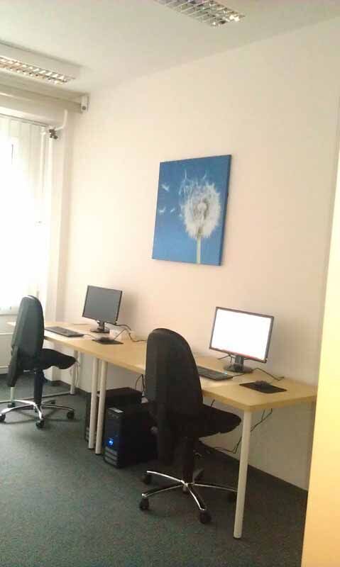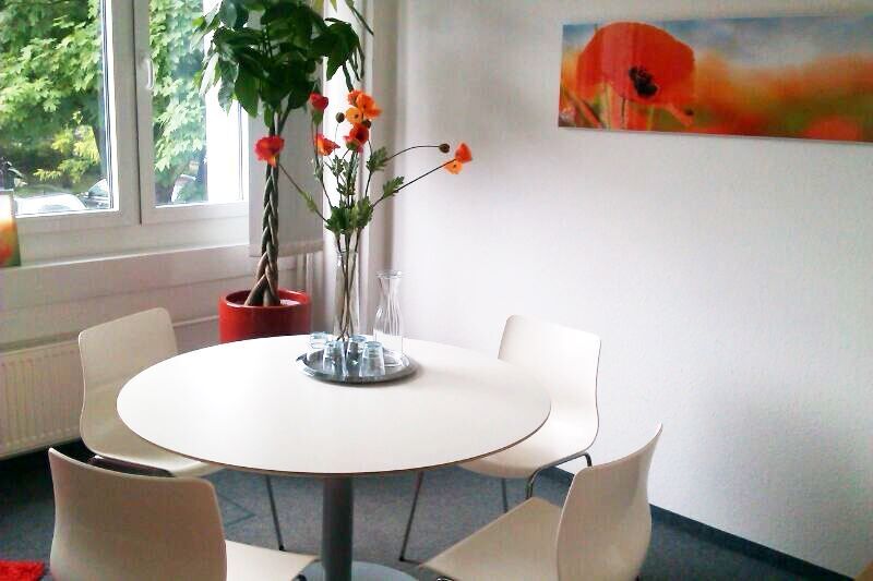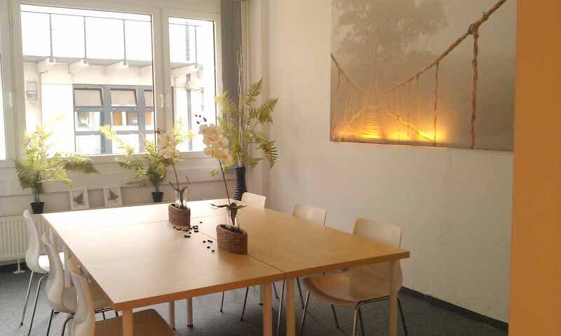 Die modernen hellen Schulungsräume bieten mit ihren Grünpflanzen eine angenehme Lernumgebung. Die Unterrichtszeiten liegen zwischen 8 und 16:15 Uhr. Wenn die Lutherkirche die Mittagspause im wahrsten Sinne des Wortes „einläutet“, nutzen unsere Teilnehmer gerne die zwei Workshopräume mit großen Tischen und Sofa zum gemeinsamen Essen, Entspannen und Reden. Wer lieber einen kleinen Bummel machen oder auswärts essen möchte, findet in der Fürst-Pückler-Einkaufspassage mehrere Modegeschäfte, Restaurants und einen Supermarkt.