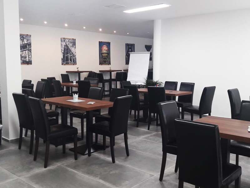 Pause gefällig? In den kleinen Teeküchen können Sie sich mit kostenlosen Getränken versorgen und den Kühlschrank nutzen. Zusätzlich steht Ihnen ein großes Bistro mit 50 Plätzen, WiFi-Zugang, Snack- und Getränkeautomaten zur Verfügung. Hier können Sie sich kostengünstig mit heißen und kalten Getränken versorgen. Hohe Bistrotische, Stehtische und Barstühle mit dunklem Leder sorgen für gehobene Atmosphäre; gerne wird der Raum auch von kleinen Gruppen für gemeinsame Lernphasen genutzt. Wer sich auswärts etwas zu Essen besorgen möchte, findet gleich drei Supermärkte in direkter Nachbarschaft zur Auswahl. Ein kleiner Park in der Nähe lädt zum Spaziergang ein.
