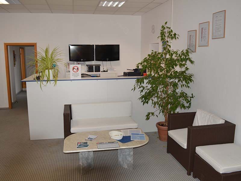 Bei Bedarf bringt Sie ein Fahrstuhl hoch in den zweiten Stock. Über den großzügigen Empfangsbereich mit Sitzecke erreichen Sie die großen lichtdurchfluteten und behindertengerechten Schulungsräume. Der Blick nach draußen fällt Richtung Schloss Friedenstein. Ihr Unterricht findet zwischen 8 und 16:15 Uhr statt.