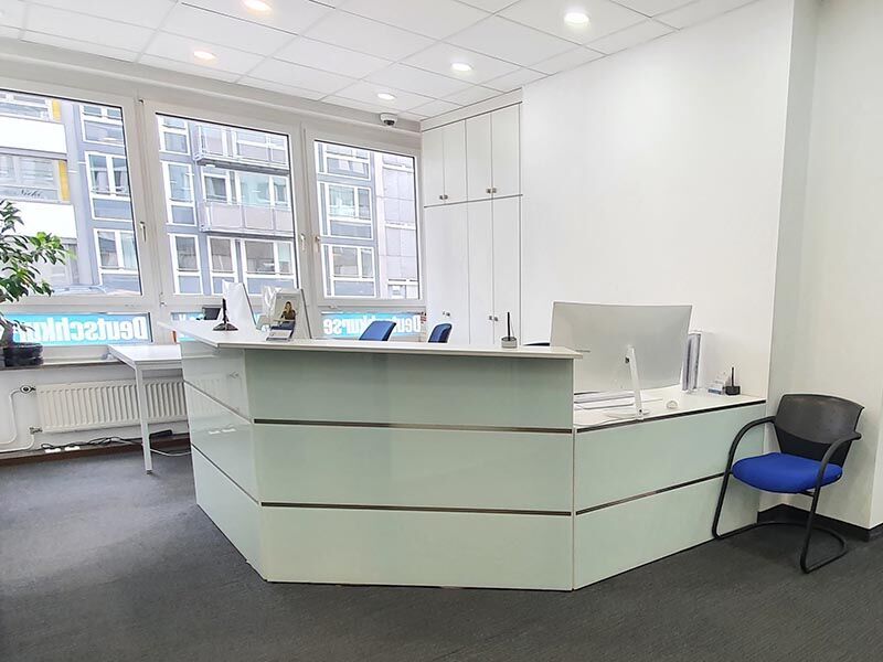 Auf insgesamt fünf Stockwerken erstrecken sich unsere Schulungsräume in dem modernen achtstöckigen Gebäude. Sie erreichen die Räume über die Treppe oder den Fahrstuhl. Breite Fensterfronten, Grünpflanzen und modern ausgestattete Arbeitsplätze sorgen für eine freundliche Lernumgebung. Vor Ort steht das Team bei Fragen für Sie gern bereit.