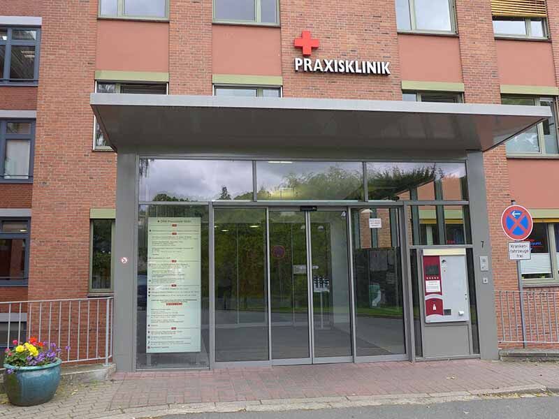 Vom Bahnhof (7 min. Fußweg): Gegenüber des Bahnhofgebäudes beginnt ein schmaler Fußweg, nach dessen Ende links über den Parkplatz durch den Park der Praxisklinik.