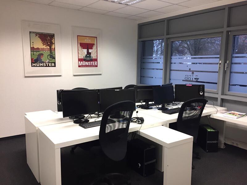 Sie finden unseren Standort am Bremer Platz 11 gegenüber dem Parkhaus auf der Rückseite des Münsteraner Bahnhofs. Hier findet der Unterricht zwischen 8 und 16:15 Uhr statt. Wir bieten Ihnen moderne und helle Lernbüros im Erdgeschoss und in der ersten Etage, barrierefreie Zugänge und eine großzügige Atmosphäre mit Teeküchen und Pausenraum. Die liebevolle Gestaltung der Räume dokumentiert die Verbundenheit des IBB-Standortes mit der Stadt des westfälischen Friedens. Einkaufsmöglichkeiten und Restaurants in der Nachbarschaft und die Nähe zur grünen Promenade runden die Attraktivität des Standorts ab.