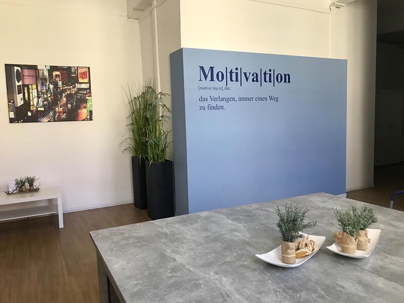 Ihre Unterrichtszeiten liegen zwischen 8 und 16:15 Uhr, aber Sie haben natürlich auch Zeit zur Erholung. Entspannen Sie sich in den zwei großzügigen Aulen mit Pflanzen, Bildern und Möbeln. Rauchern steht eine separate Lounge mit Lüftung zur Verfügung. Ein moderner Küchenblock mit Herd, Kühlschrank, Wasserkocher und Kaffeemaschine sorgt dafür, dass Sie sich stärken können. Außerdem finden Sie hier einen Automaten mit diversen Heißgetränken. Ein Tipp für alle, die gerne mal auswärts essen: Das Restaurant im Kulturhaus Osterfeld bietet einen täglich frisch zubereiteten Mittagstisch an und ist in zwei Minuten in der Parallelstraße erreichbar. Ein weiteres Restaurant, Pizzaservice, Kiosk und Bäcker finden Sie gleich gegenüber.