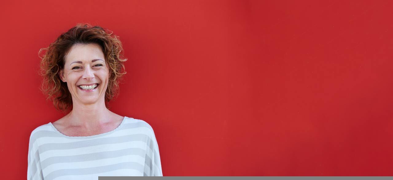 eine Frau mit rotem Hemd und rotem Hemd